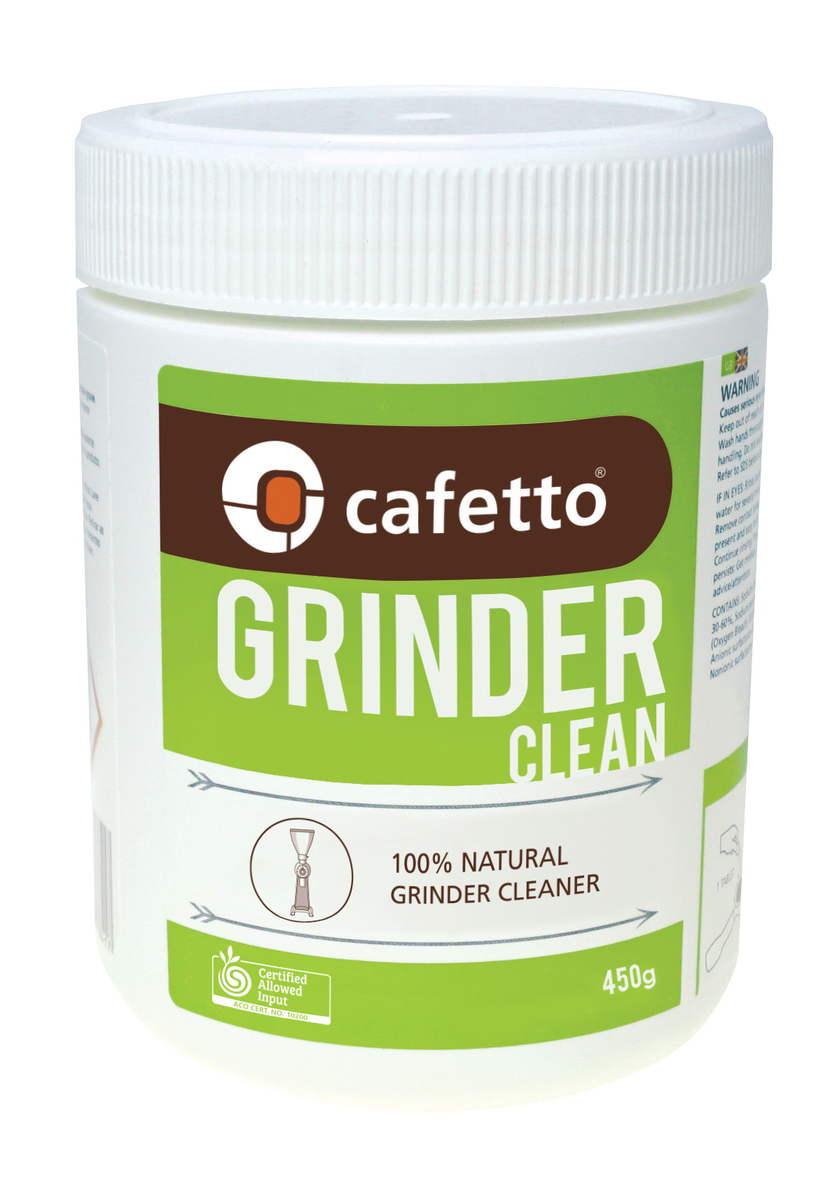 Sposób użycia: Po opróżnieniu hopper’a kawy, należy wsypać odpowiednią ilość Grinder Clean, zmielić cały preparat, a następnie zmielić niewielką porcję kawy w celu oczyszczenia żaren.