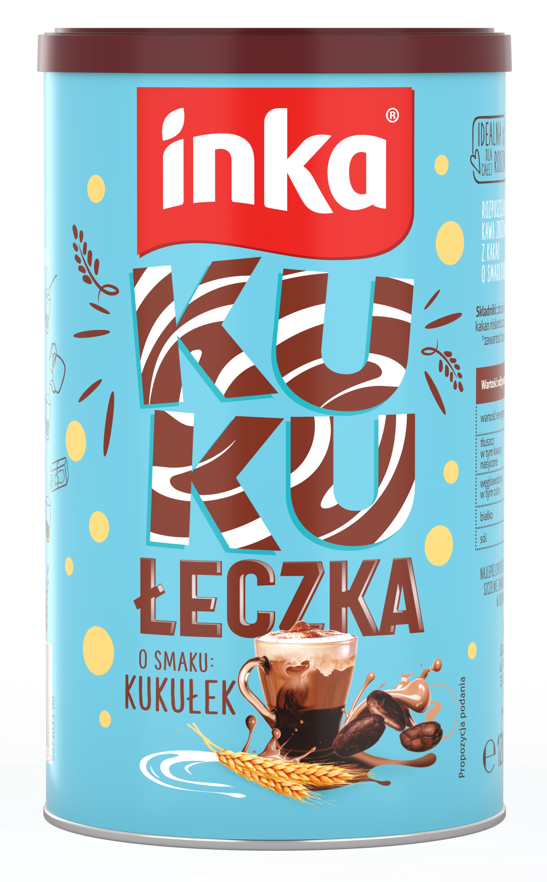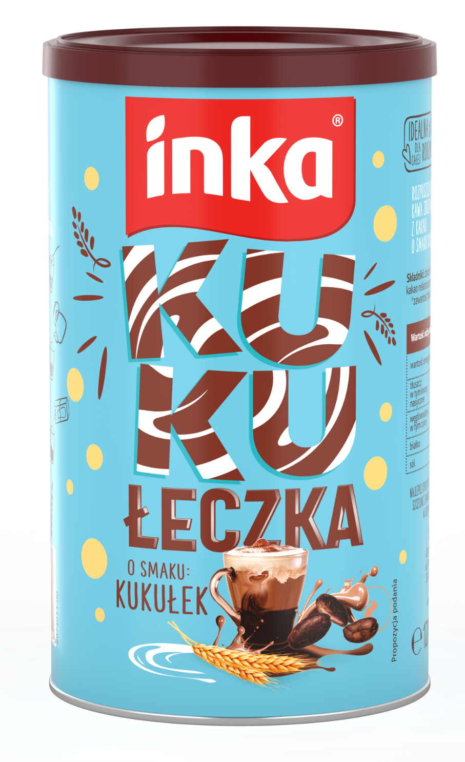 Inka Kukułeczka – kawa zbożowa z kakao o smaku kukułek 120g Znakomite połączenie kawy zbożowej z kakao oraz znanych i lubianych cukierków: Kukułek.