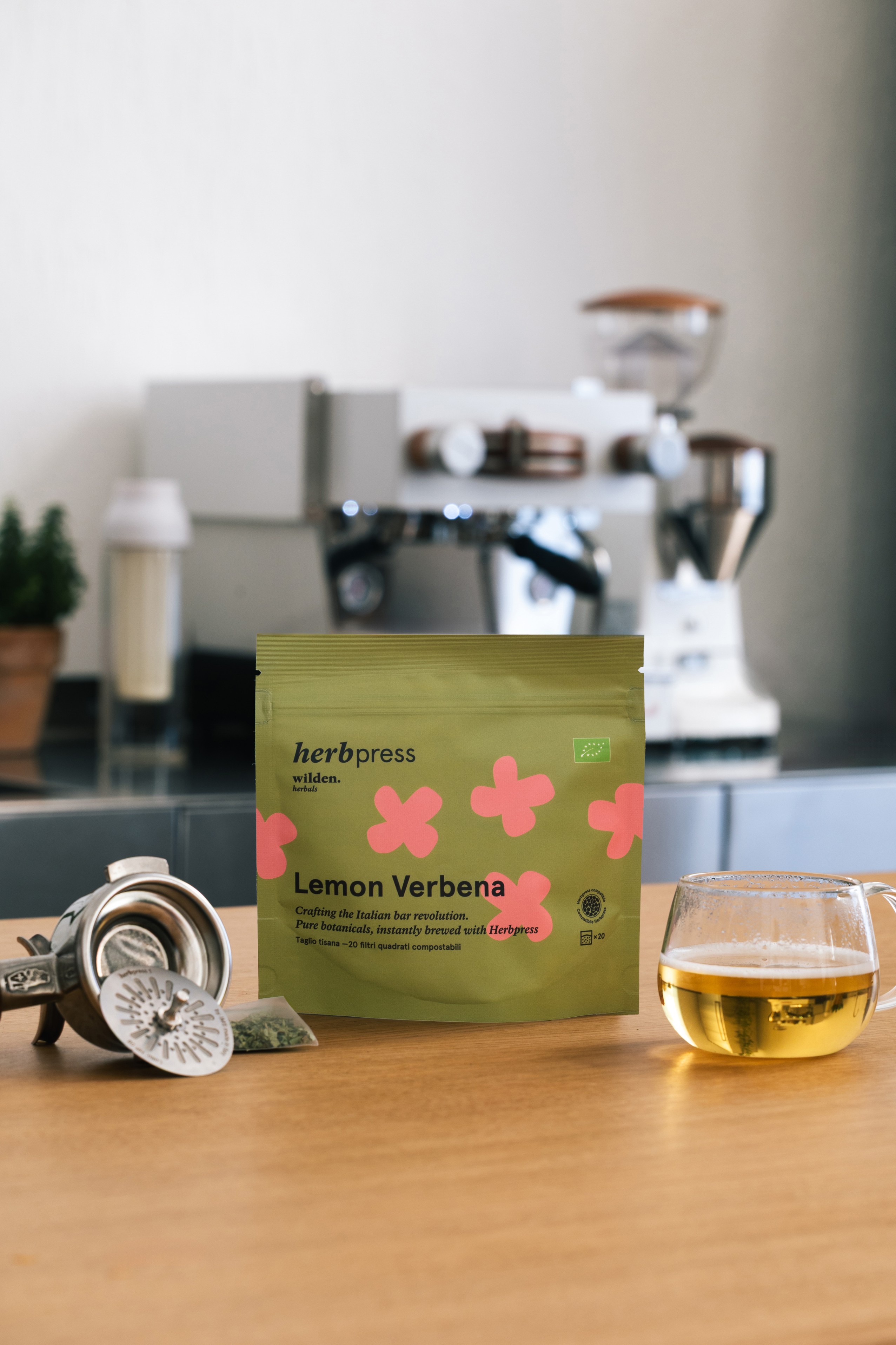HERBPRESS to pierwszy opatentowany system, który pozwala na błyskawiczne parzenie naparów botanicznych przy użyciu dowolnego kolbowego ekspresu ciśnieniowego. Technologia opracowana przez Wilden Herbals i IMS Filtri przenosi precyzję ekstrakcji espresso do świata ziół, zmieniając klasyczny ekspres kolbowy w innowacyjne narzędzie do przygotowywania naparów z roślin.